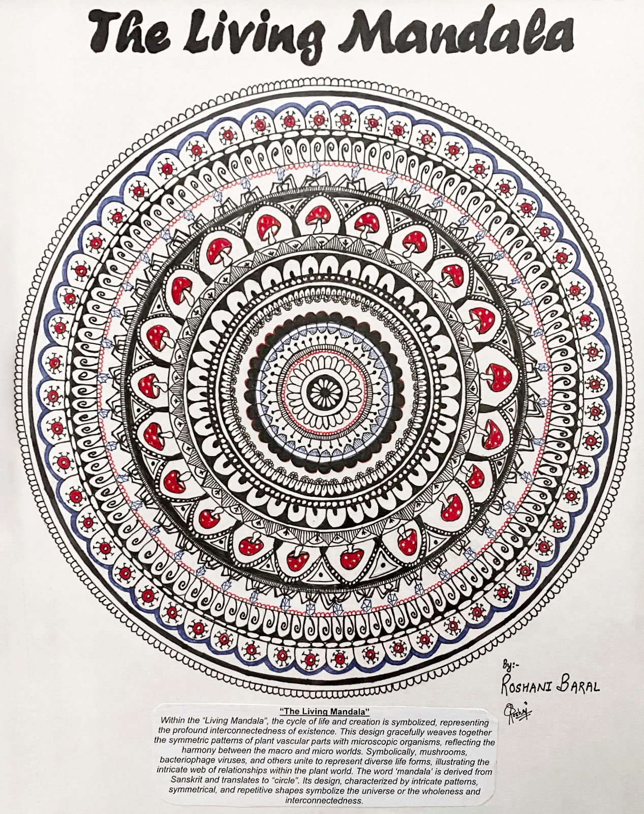 Early fall, we welcomed Cristina Ocaña Gallegos (full-time research technician) and Mary Steele (PhD student) into the Berry and Potato Pathology program. Cristina completed a master’s degree in crop science focusing on speed-breeding and screening of preharvest sprouting tolerance in quinoa. Mary’s master’s research from Cal Poly, San Luis Obispo, involved surveying and managing soilborne pathogens of strawberry. Her PhD research will focus on Botrytis management in blueberries, and she will be co-advised by Lindsey du Toit and Chakradhar Mattupalli. Roshani continued sampling several blueberry fields in Whatcom and Skagit Counties and isolated ~1,300 Botrytis spp. isolates since 2022. She is developing methods to screen these isolates for identifying potential resistance to fungicides of different chemistries. Purnima conducted second-year field trials to study silver scurf disease development in potatoes. Babette and Adam conducted a new field trial to study the effect of different vine kill and irrigation treatments on the development of skin set as well as surface blemish diseases. This project was performed in collaboration with Jacob Blauer and Gabe LaHue. Chakradhar in collaboration with Manoj Karkee also received funding from WSU’s ERI program to develop a robotic potato tuber sampling system that would aid implementation of a new diagnostic protocol for detecting potato pathogens. Progress was made on research projects related to mummy berry management, monitoring blueberry shock disease, and studying rotation crop effects on pathogens causing surface blemishes on potatoes. Roshani’s artwork “Living Mandala” won the Art in Phytopathology Contest in two categories: ‘Arts and Crafts’ and ‘Best in Show’. Her artwork was displayed at the Plant Health 2023 Conference held in August 2023 in Denver, CO. Roshani and Purnima received WSU Department of Plant Pathology Student Travel awards to present their research at the upcoming APS Pacific Division Meeting in Corvallis, OR in March 2024.