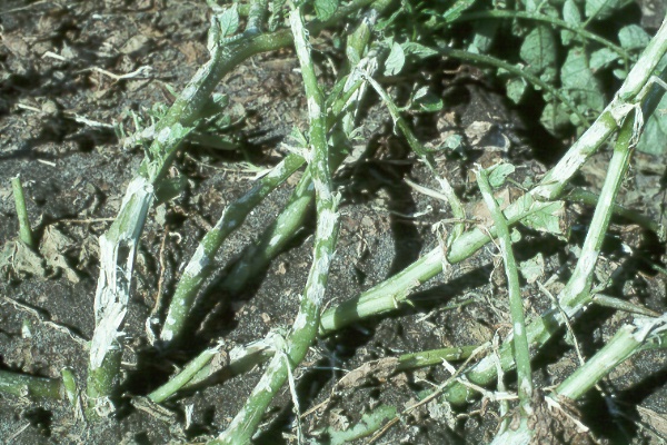 Extension Network Sites > Pacific Northwest Vegetable Extension Group > Potato black leg Potato black leg Potato ‘Norkotah’ Hail damage 3 days post hail storm as comparison. Photo Source: G.Q. Pelter ↑ Back to top