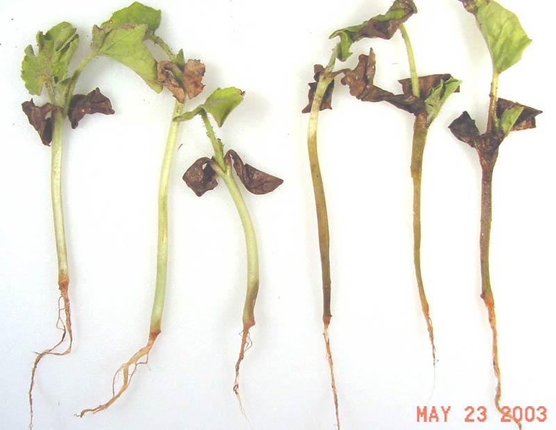 Extension Network Sites > Pacific Northwest Vegetable Extension Group > Watermelon seedling blight Watermelon seedling blight Photo Source: Lindsey du Toit